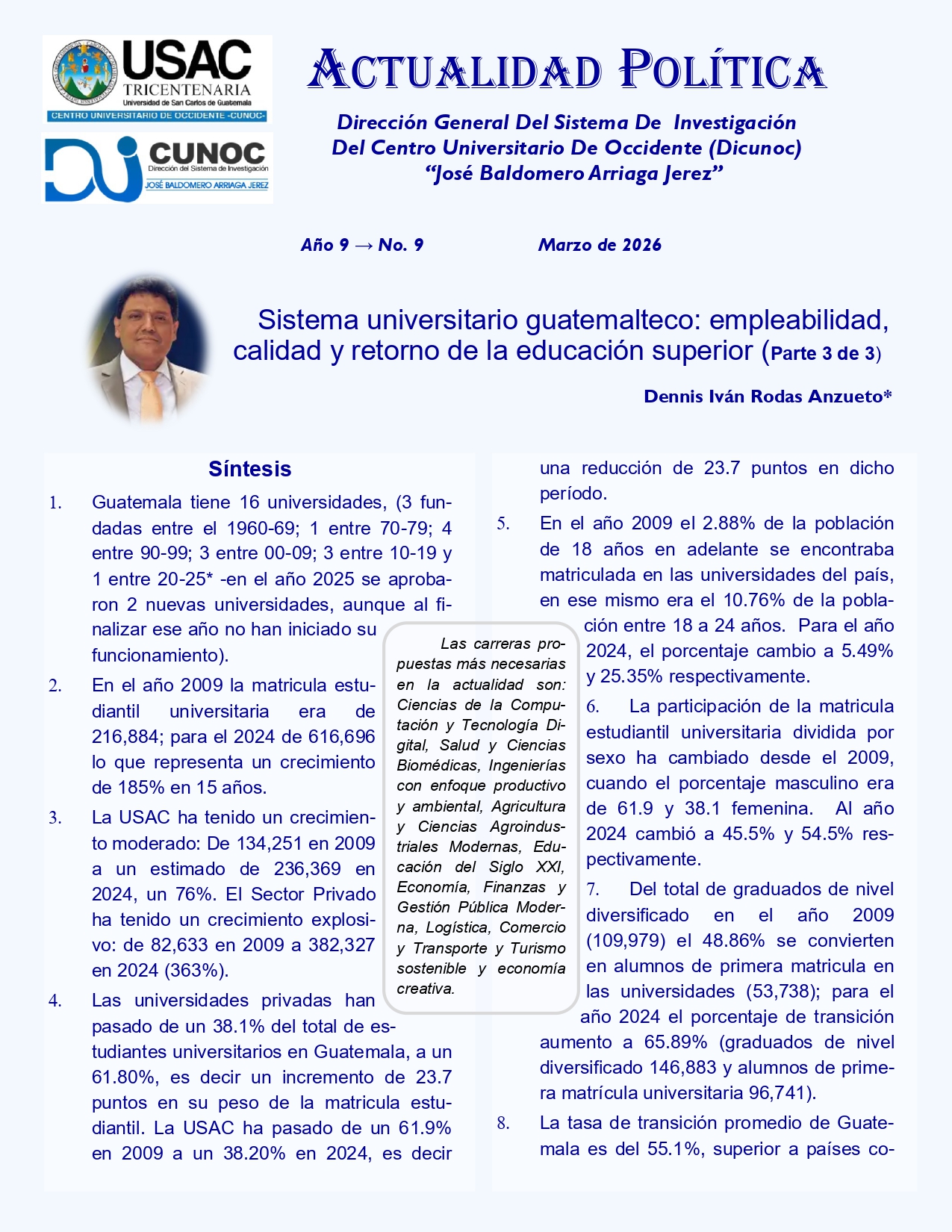 Columna de Opinión redactada por Denis Iván RodasSistema universitario guatemalteco: empleabilidad, calidad y retorno de la educación superior. Parte III