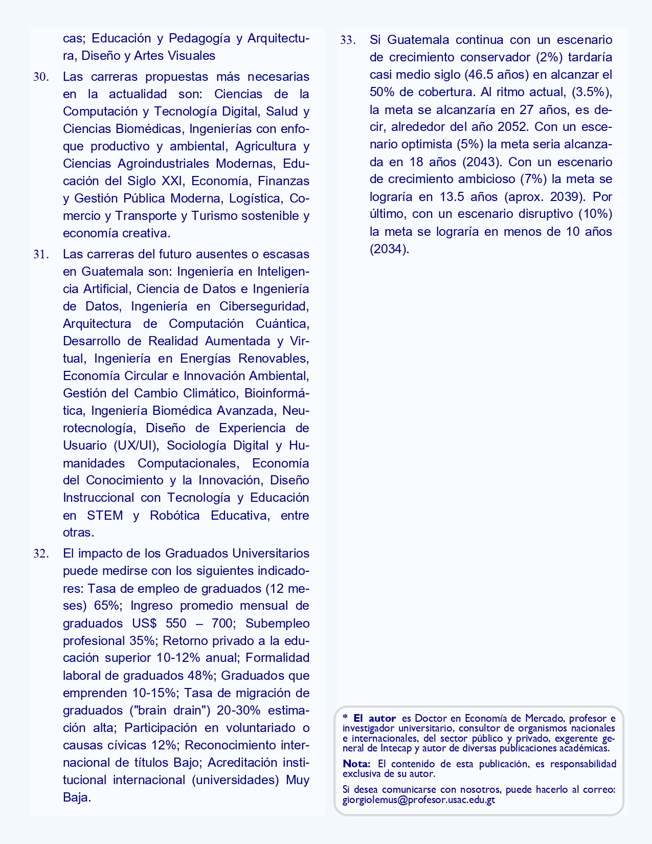 Columna de Opinión redactada por Denis Iván RodasSistema universitario guatemalteco: empleabilidad, calidad y retorno de la educación superior. Parte II.