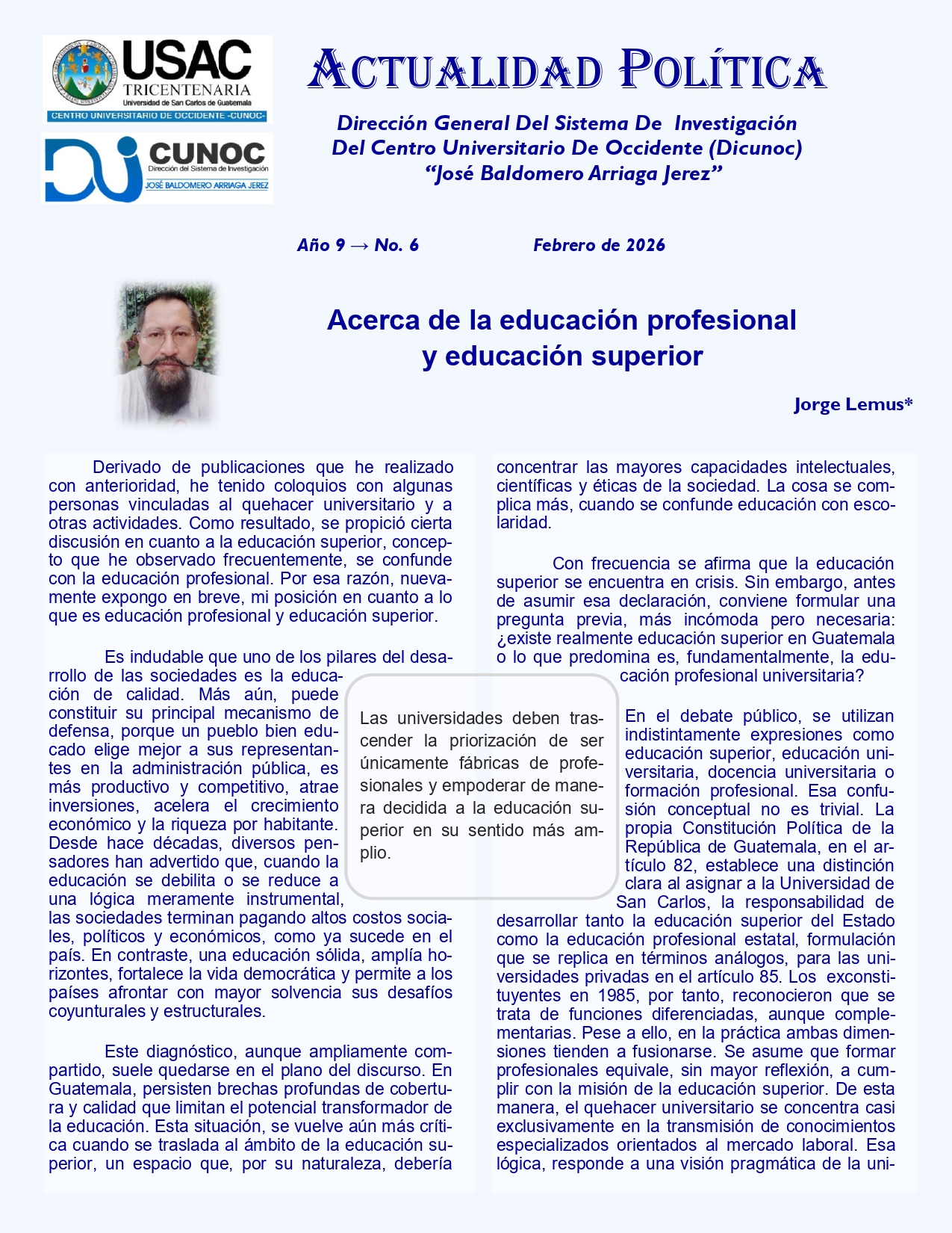 Columna de Opinión redactada por el profesor investigador de la Dirección General de Investigaciones del Centro Universitario de Occidente, Jorge Lemus.