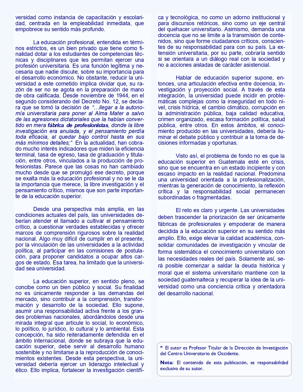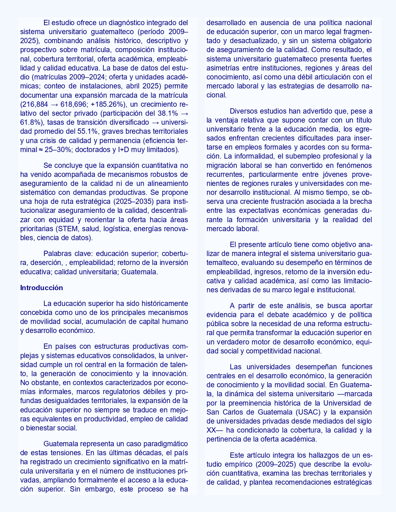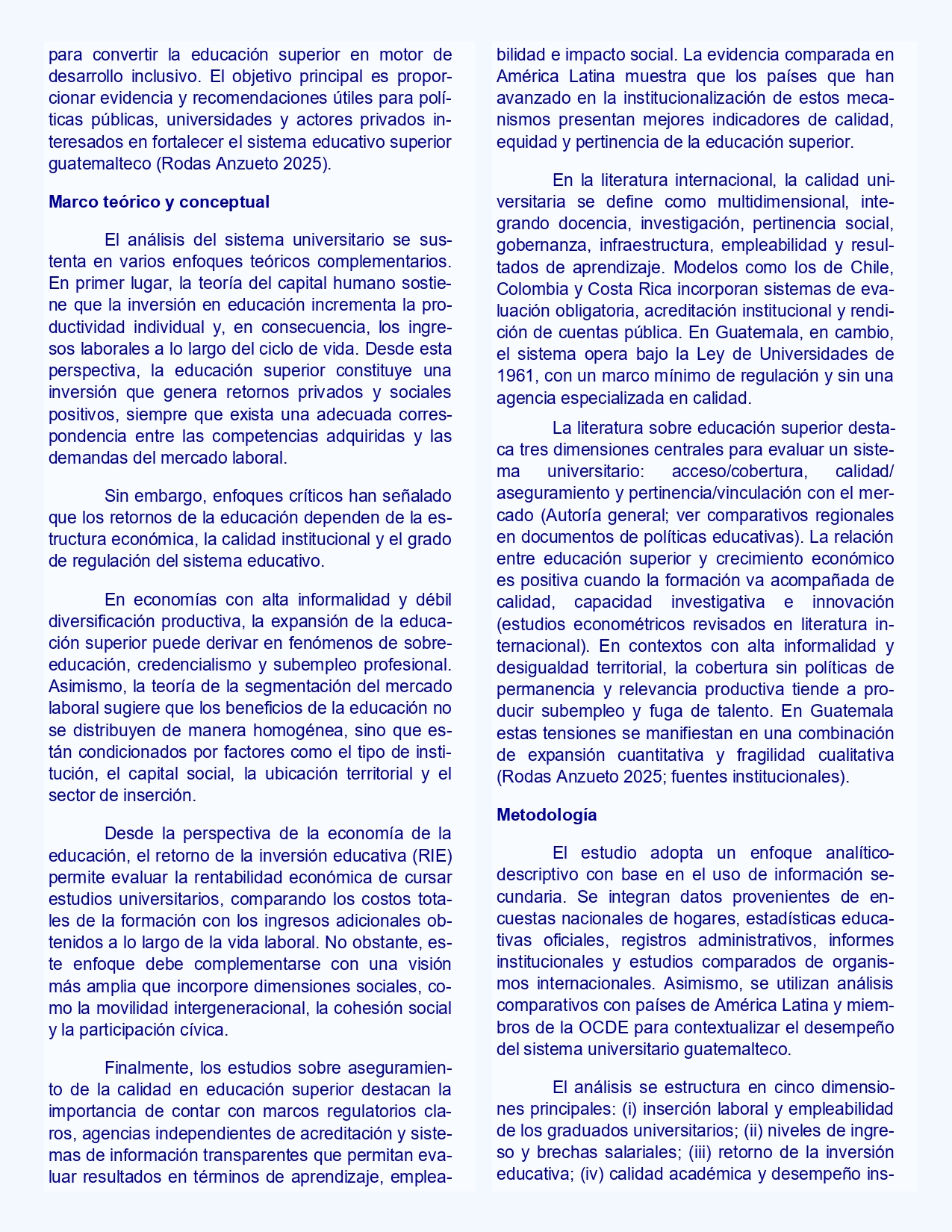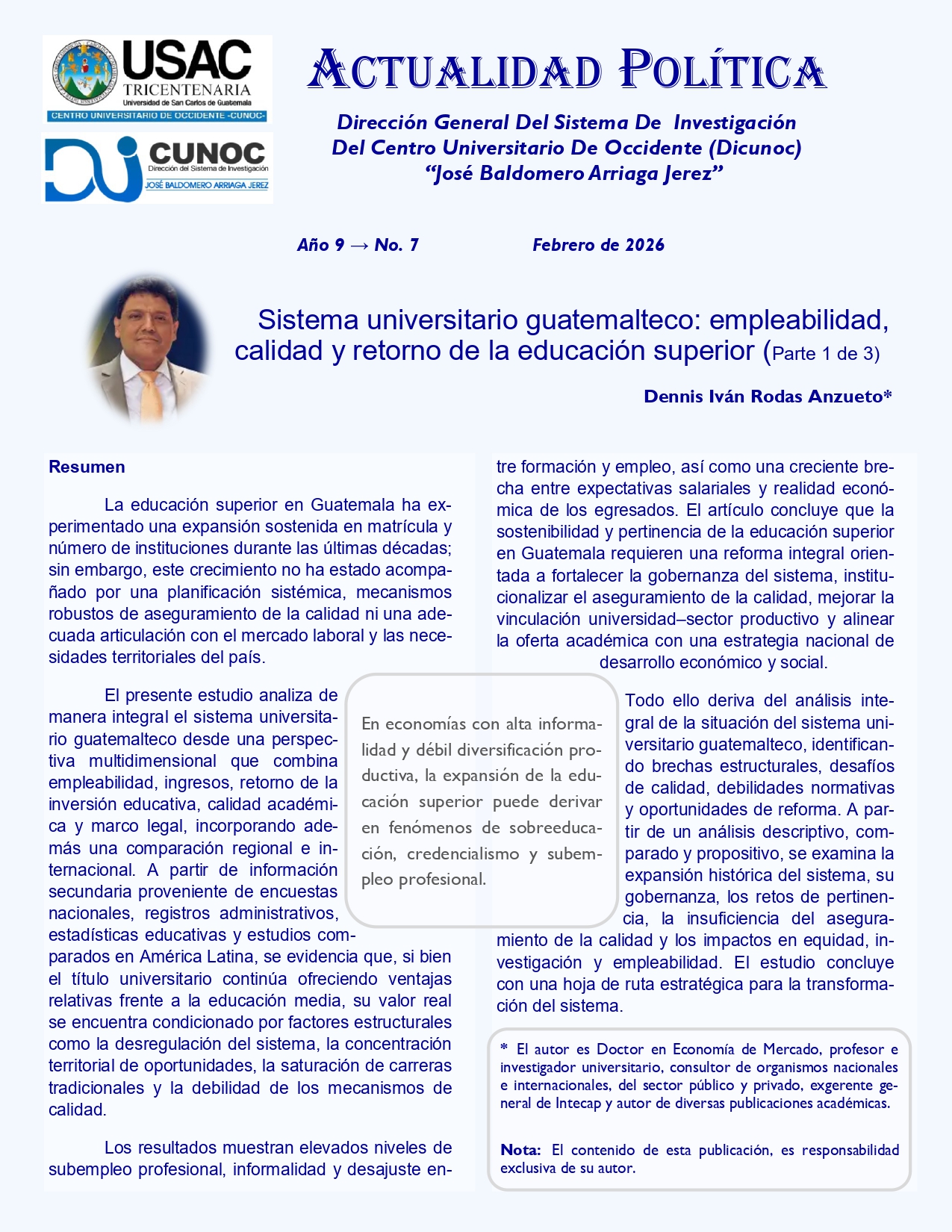 Columna de Opinión redactada por Denis Iván RodasSistema universitario guatemalteco: empleabilidad, calidad y retorno de la educación superior.
