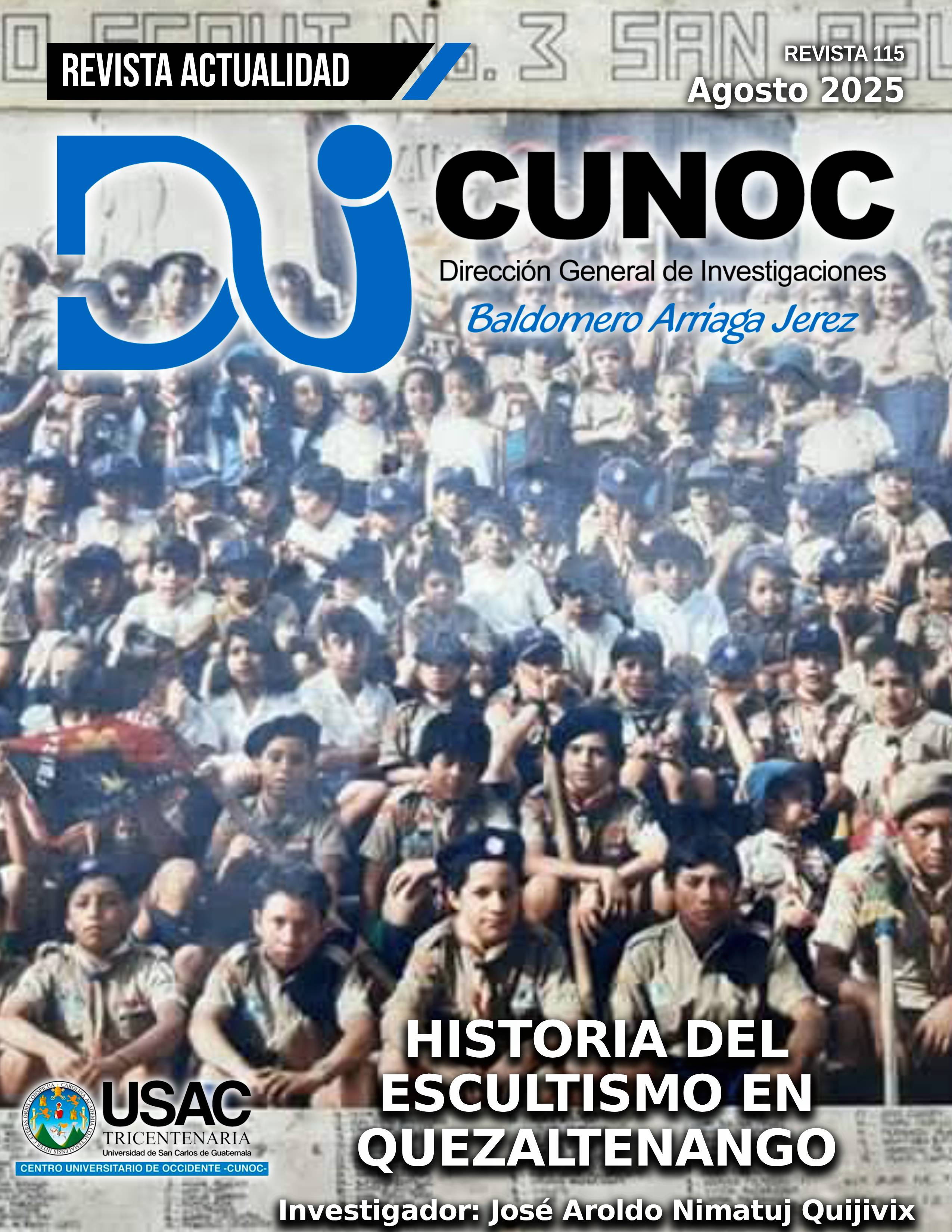 La Dirección General de Investigaciones del Centro Universitario de Occidente presenta la Revista Actualidad edición 115, que incluye el tema La historia del escultismo en Quetzaltenango, fundación del Grupo No. 3 San Agustín uno de los grupos mas longevos en la region 22 con 65 años de vida ininterrumpidamente, este articulo pretende visivilizar la vida de alguno de los fundadores que descubrieron en el movimiento un amor a la vida al aire libre y las tendencias a las buenas acciones. Esta investigación la realizó el profesor investigador de Dicunoc, José Aroldo Nimatuj Quijivix. Diseño de Portada: Fred Rivera